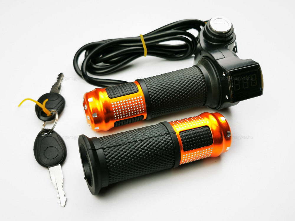 Gázkar töltöttség visszajelzővel és gyújtáskapcsolóval (skálás) - elektromos kerékpárhoz