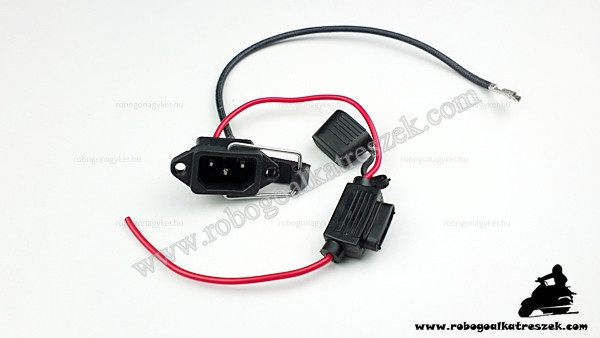 Három pólusú szögletes dugós töltőaljzat biztosíték tartóval - elektromos kerékpárhoz