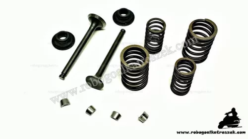 A szett tartalmazza a szelepeket, a rugókat, a biztosítékokat, a két felső tányért és a szimeringeket.